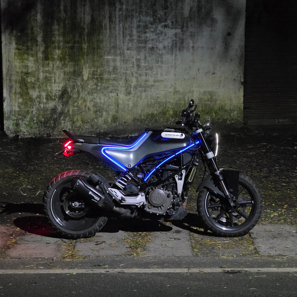 The Flare kit is made for those who ride to stand out. With 2 headlight veins, 2 long body strips, and 2 medium body veins, it offers full-body illumination that flows with your bike’s design. Bright, bold, and beautifully balanced – this setup gives your machine a premium glow that demands attention, day or night.